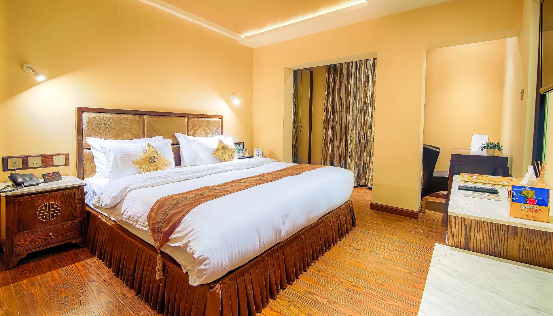 Our Heaven rooms are adorned with elegant artwork and stylish furnishings, making them the top choice for couples, families, friends, corporate travelers, and long-term guests in the city. Each room offers a queen-sized bed or twin beds that can be joined to create a king-sized bed. If needed, a rollaway bed can be added to accommodate a third guest. Additionally, all rooms feature a desk and a private bathroom equipped with lavish toiletries. The rooms are tastefully decorated with high-quality linen and exquisite brown wood sourced from the teak forests of India. Nestled in the heart of the city, our Heaven rooms provide a combination of deluxe accommodation, comfort, and opulence within a spacious 240 square feet area.
